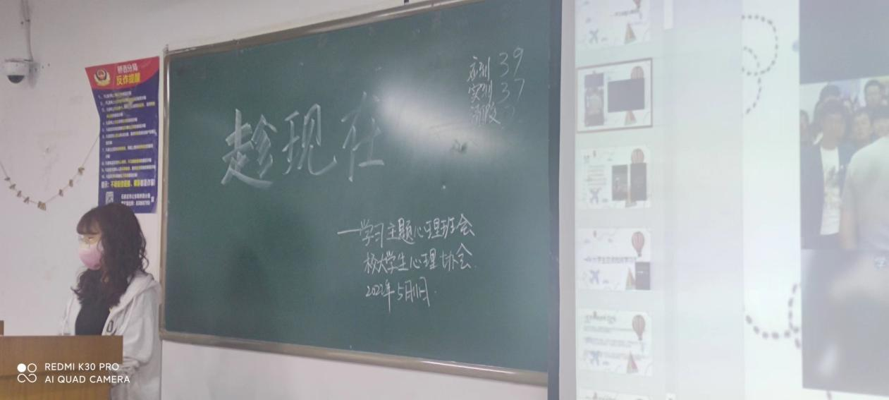 临近期末,学生学习压力增加,部分学生出现学习焦虑情绪。各班心理委员开展了“趁现在”主题班会,帮助学生确定自己的学习目标。