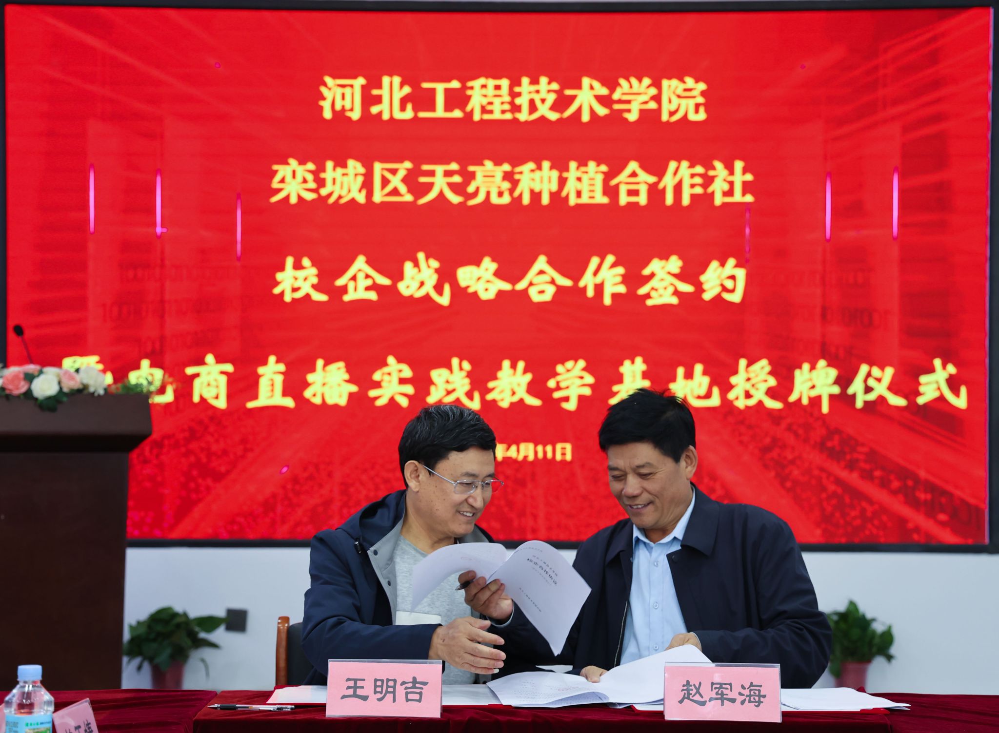 商学院院长王明吉在致辞中,对栾城区天然富硒富锰的区位优势给予了高度评价。他指出,商学院一直致力于打造最懂河北中小微企业的商学院,此次与天亮种植合作社的合作,必将为双方带来新的发展机遇。王院长表示,商学院将充分利用自身的教学资源和科研优势,为天亮种植合作社提供人才支持和技术服务,共同推动栾城区产业升级和助力乡村振兴。