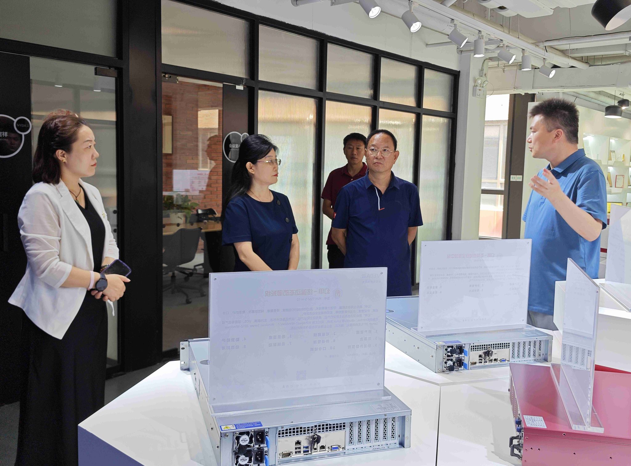 签约授牌仪式后,双方代表就校企合作的具体内容、实施方式及未来规划进行了深入座谈交流。双方表示,将秉持“优势互补、资源共享、互惠互利、共同发展”的原则,深化在人才培养、科学研究、实习实训、学生就业等方面的务实合作,促进网络空间安全学科建设和专业人才培养。随后,在张长河董事长的的陪同下,学校代表一行参观了北京卫达信息技术有限公司的产品和荣誉展厅,进一步了解了企业的运营情况和企业文化。