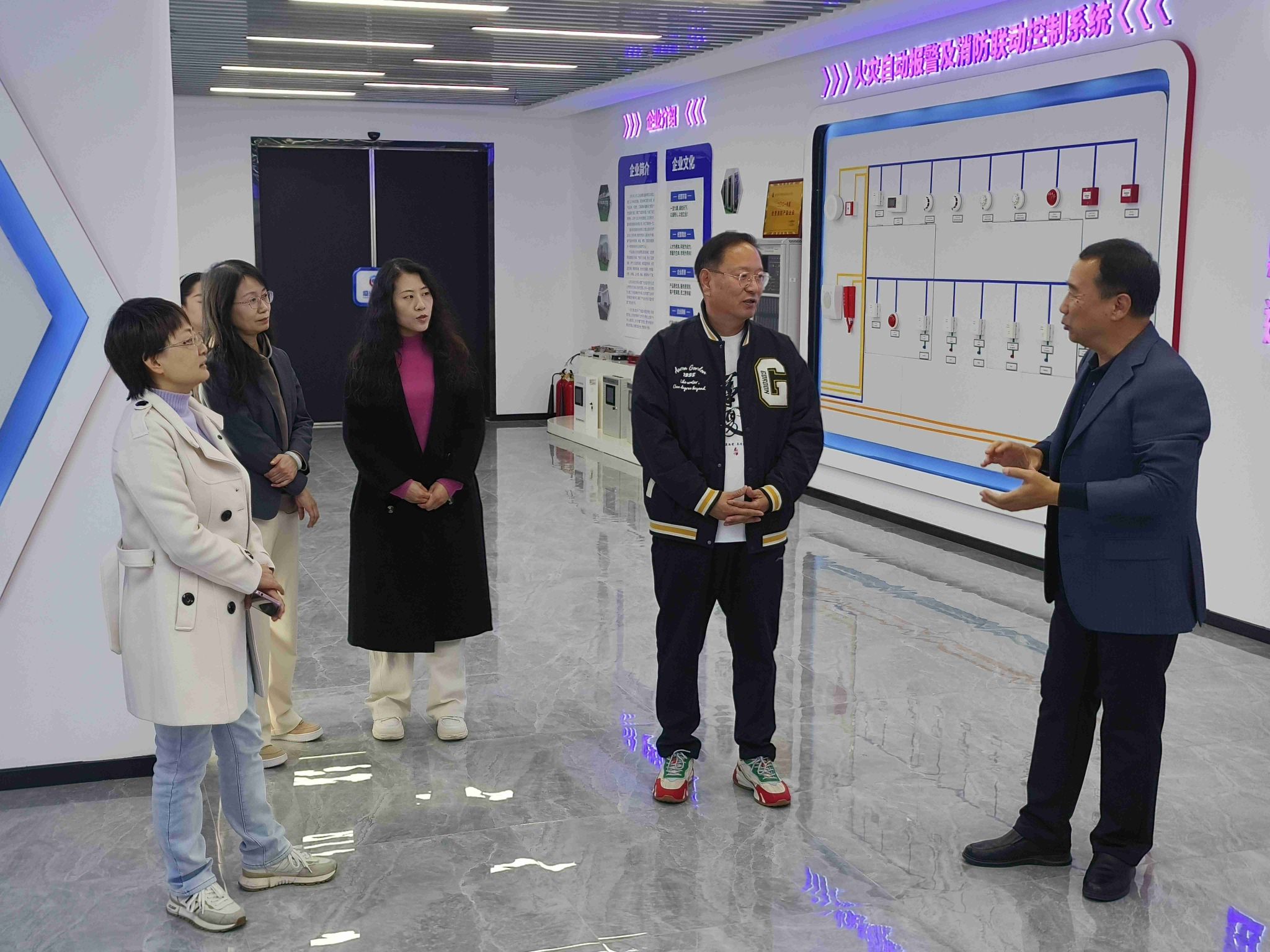 该公司是一家以研发生产消防报警设备系列产品为主,安防系统、智能传感技术、通讯技术为辅,集产品研发、制造、销售、安装、咨询服务为一体的高新技术企业。李总在介绍中表示,企业的发展离不开技术与人才的支持,非常希望能与高校在产学研方面开展深入的合作,实现资源共享、优势互补。