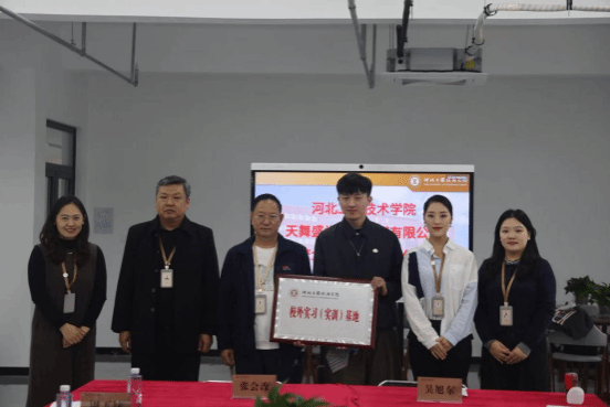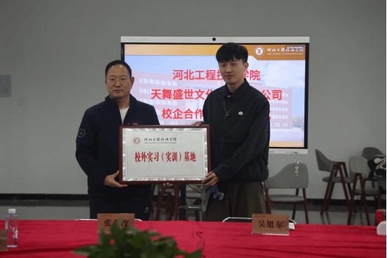 在全体参会人员的共同见证下,双方代表签署了校企合作协议,并授予天津天舞IDG“校外实习实训基地”牌匾。