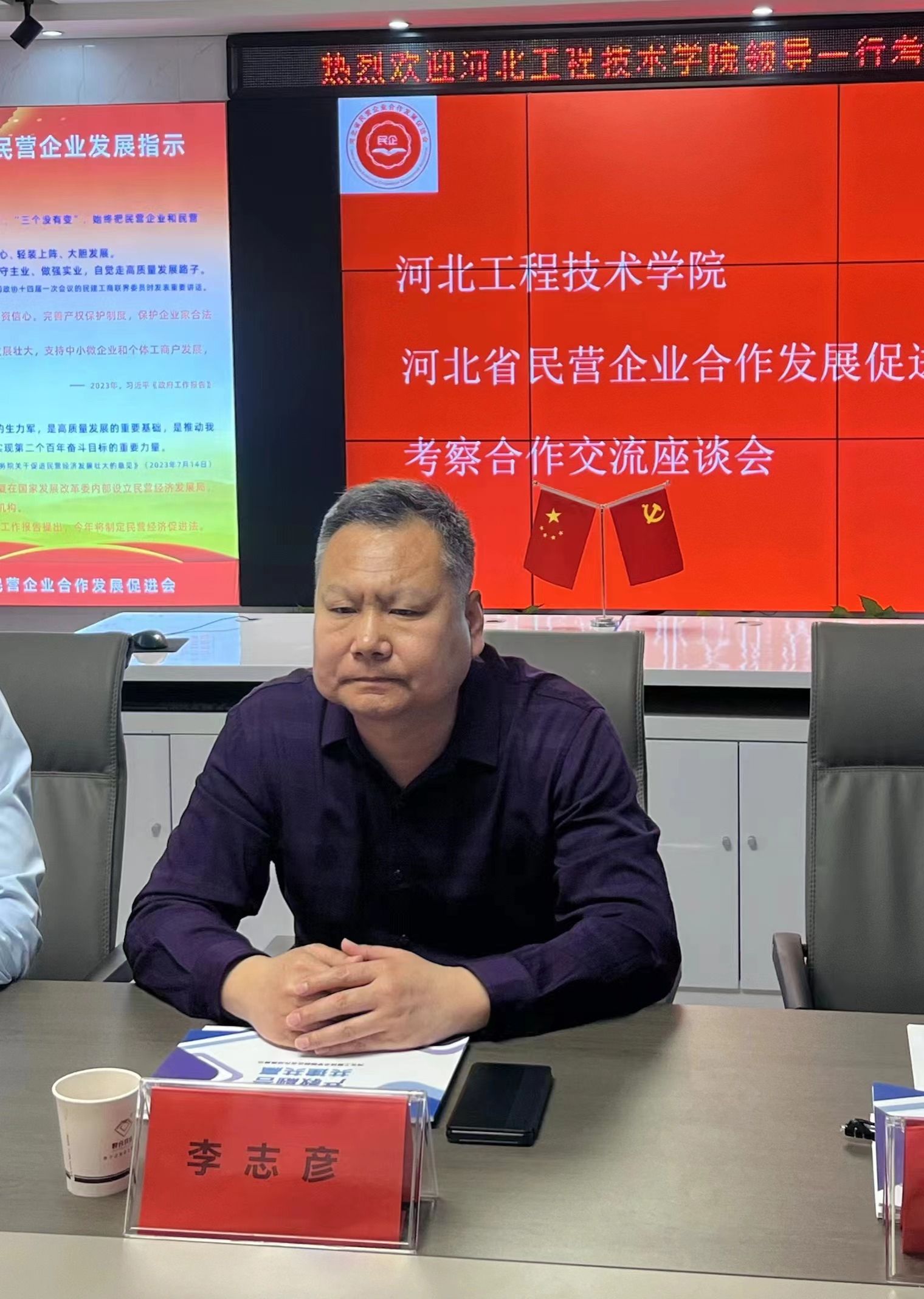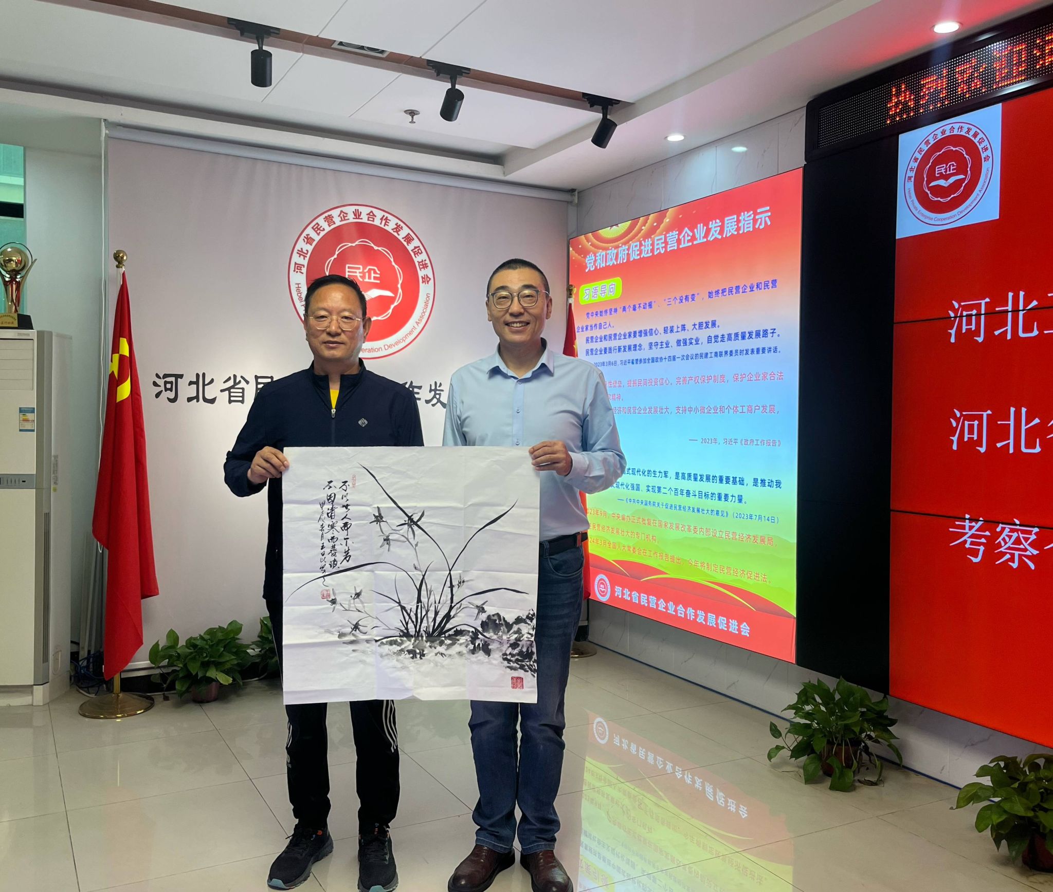 调研组一行受到省民促会会长李志彦、秘书长王强、副秘书长杨洪涛、王勇的热情接待;李志彦会长陪同调研组一行参观了协会综合展厅并详细介绍了协会的发展历程及服务内容。据介绍,省民促会成立于2008年,协会主要是为维护民营企业利益,为政府决策提供信息咨询、为民营企业合作和发展提供服务,以促进民营企业健康发展。2021年被河北省工信厅认定为河北省“工业诊所”,诊所汇聚了政策、产业、科技、人才等各方面资源,积极促进民营企业与高等院校、科研院所联合,探索产学研三方共同发展的运行机制。