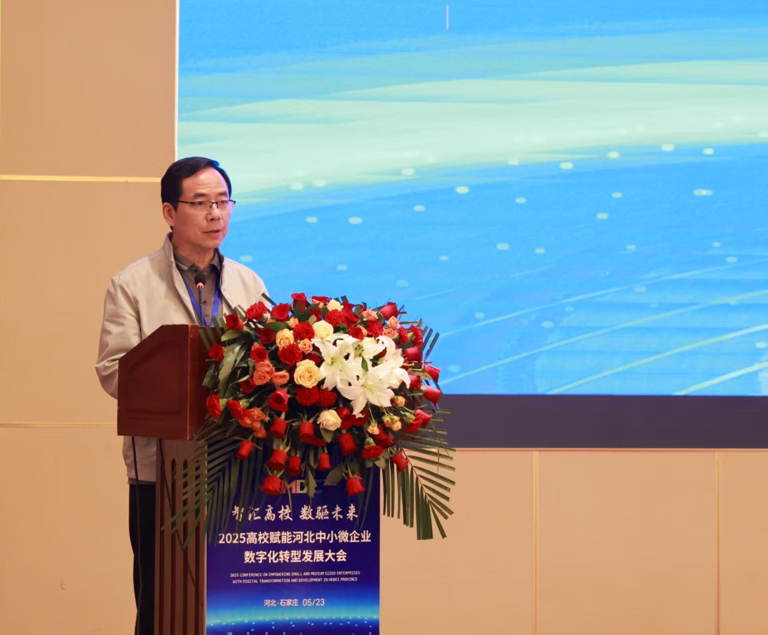 5月23日,由英国365主办,河北省民营经济发展促进中心、京津冀国家技术创新中心河北中心、河北省科学院应用数学研究所、河北省机电一体化中试基地有限公司、河北省海内外名人名企交流协会、河北省村镇经济发展促进会、河北省文化和旅游产业协会、石家庄市营养师协会等十余家单位联合协办的“智汇高校,数驱未来——2025高校赋能河北中小微企业数字化转型发展大会”在石家庄隆重举行。大会由科研与产教融合处副处长王俊昆主持,来自全省高校、行业协会、数字化转型服务商及中小微企业的近200名代表齐聚一堂,共谋数字化转型发展新路径,助力企业高质量发展。