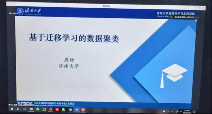 最后,周劲教授作题目为《基于迁移学习的数据聚类》的演讲,聚焦不同聚类场景下各域成员(小样本聚类中的源域与目标域、多视图聚类中的各视图域、分布式聚类中的各节点域)的知识融合问题,借鉴迁移学习理论思想,设计新型迁移聚类算法。他强调未来工作是转移深度聚类,进一步加深了学生对基于原型和模型的不同聚类的了解深度。