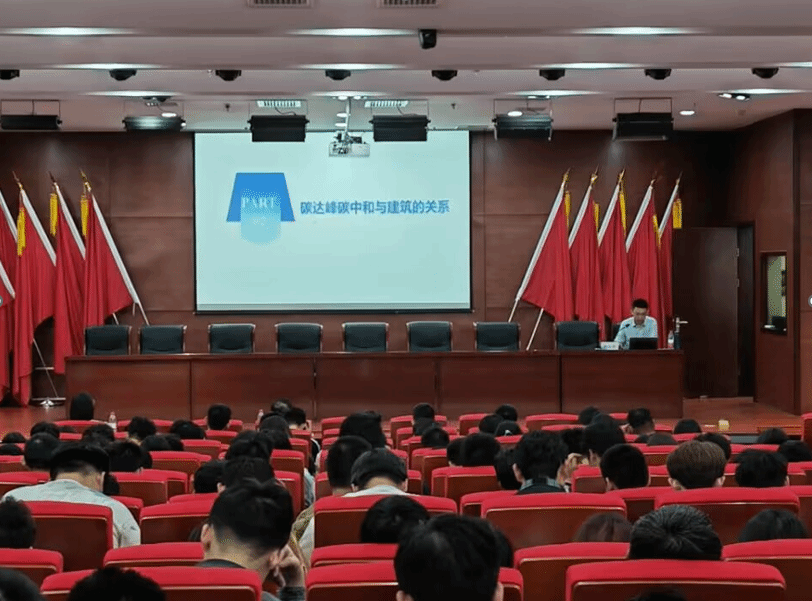 河北省建筑科学研究院有限公司总工办副主任、高级工程师滕仁栋为土木工程学院师生做了主题为“建筑领域实现碳达峰、碳中和的关键技术”的专家讲座。他从碳达峰碳中和提出的背景、碳达峰碳中和与建筑的关系、建筑领域实现碳达峰碳中和的路径三方面做了精彩报告。