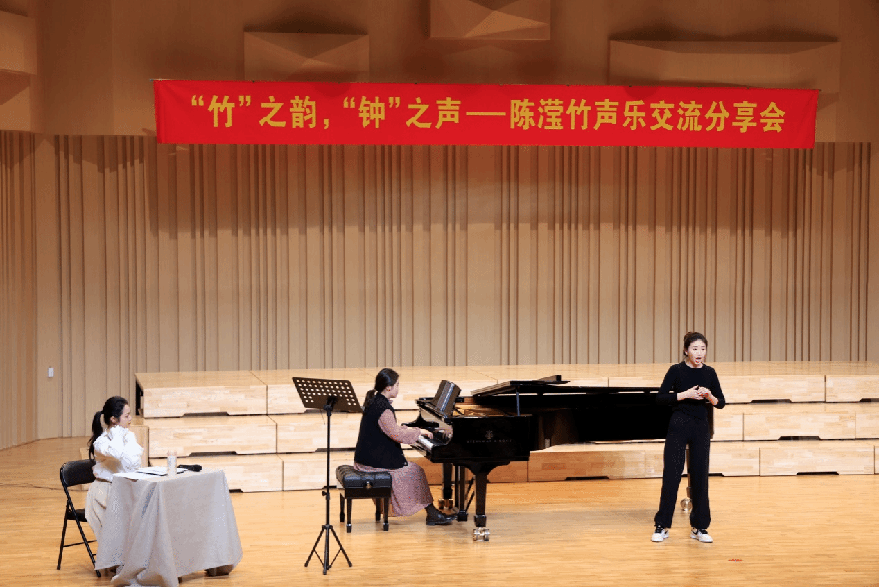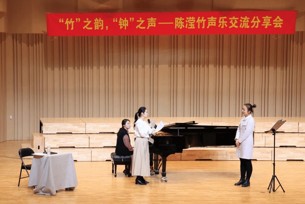 分享会上,陈滢竹回顾了自己学习声乐的经历,分享了她的舞台实践经验与学习心得。“声乐学习是系统的学习,需要全身心地投入和训练。”陈滢竹鼓励同学们,要通过量化思维应对专业学习,注重日常积累与学习,不断提升专业水平,找到适合自己的音乐作品和表演风格。