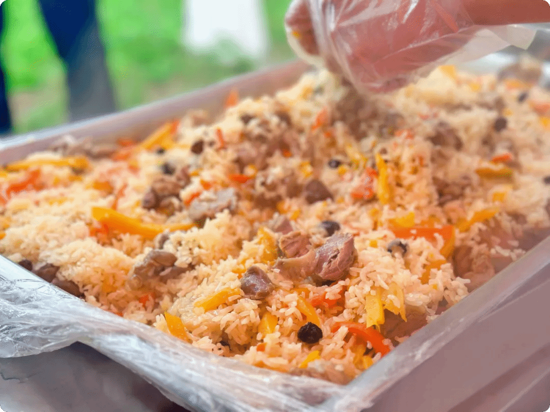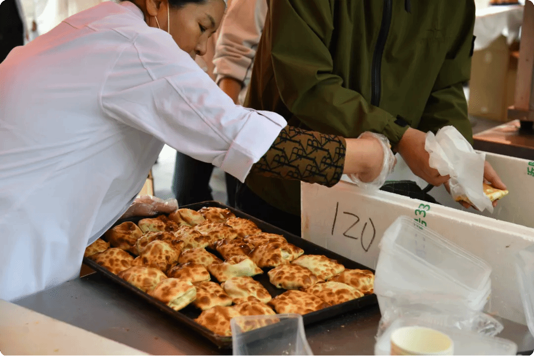 此次活动得到了赞助单位西域胡氏大盘鸡·新疆菜的大力支持,他们为师生们精心打造了一场充满浓郁西域风情的味觉盛宴。活动现场,烤包子、羊肉串、手抓饭、塔城奶酪包等新疆特色美食琳琅满目,供师生们免费品尝。长长的等候队伍,宛如校园里一道流动的亮丽风景线。