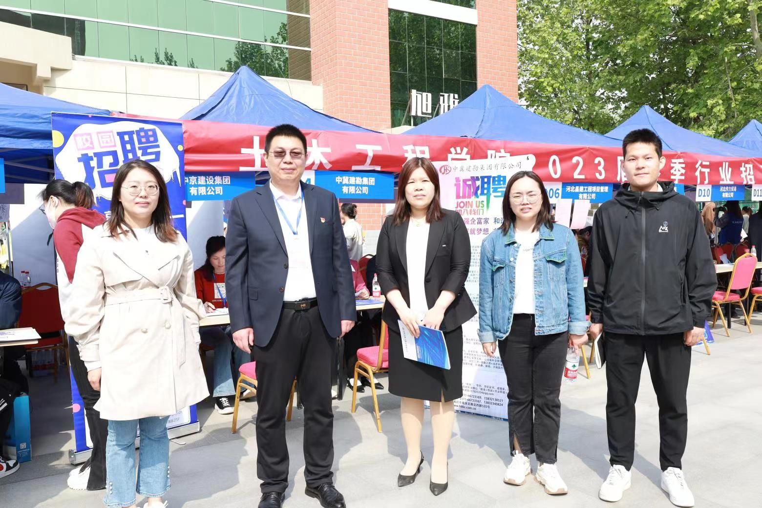 为进一步落实国家党中央、国务院关于高校毕业生就业工作的决策部署,精准对接企业用人需求,促进学生就业,为建筑行业企业选拔优秀人才,搭建毕业生与用人单位双向选择平台,2023年 4 月 27日上午,土木工程学院携手河北省住房保障协会联合举办的2023春季校园招聘会在校园广场成功举行。