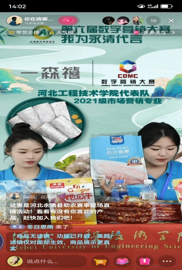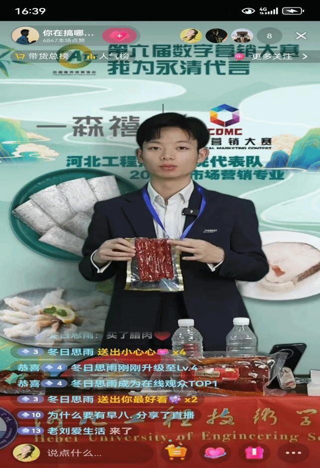 为提高学生的市场营销技能和创新能力,助力河北省乡村振兴,推动农特产品和服务出村进城,2024年4月18日--4月30日市场营销系师生参加了“第六届数字营销大赛——我为永清代言”活动。