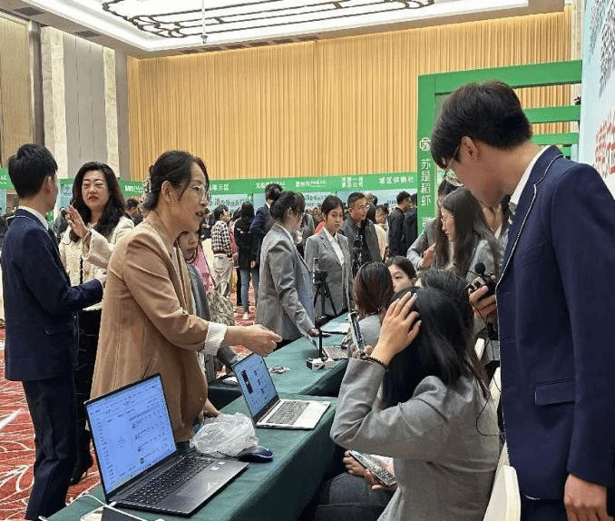 产销会现场汇集了赵县鸭梨、赞皇大枣、藁城宫面、栾城紫麦等众多农特产品,吸引了众多的消费者和客商关注与下单。除了众多县域农特产品展销外,商学院与石家庄东区供销合作公司设置了线上电商直播区,成为整个产销会的一道靓丽的风景线。