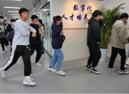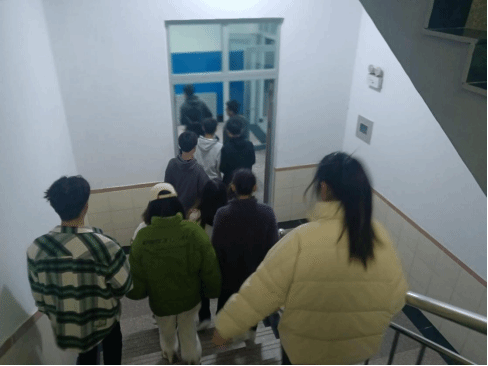 演练活动准备就绪。各学院负责人、楼层指挥人迅速到班到岗,安全工作部肖悦龙部长吹哨模拟火灾开始,随着哨声,拉开了此次消防疏散演习的帷幕,大家听到哨声后,有序撤离本班教室,沿指定路线快速下楼。