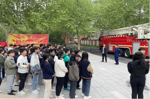2023年4月24日,校大学生消防协会于孔子像前举行“落实安全责任,推动安全发展”消防车讲解活动。参与人员有校大学生消防协会成员以及红旗大街消防救援站消防员和参与活动的大学生。