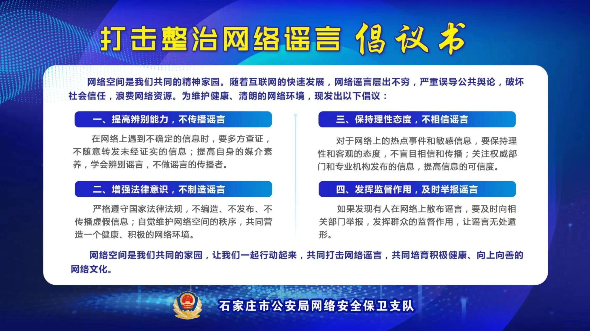 打击整治网络谣言倡议书