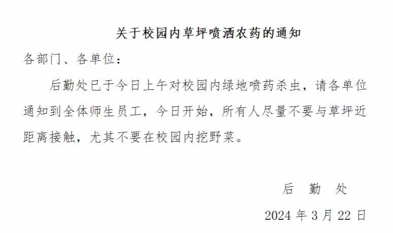 关于校园内草坪喷洒农药的通知