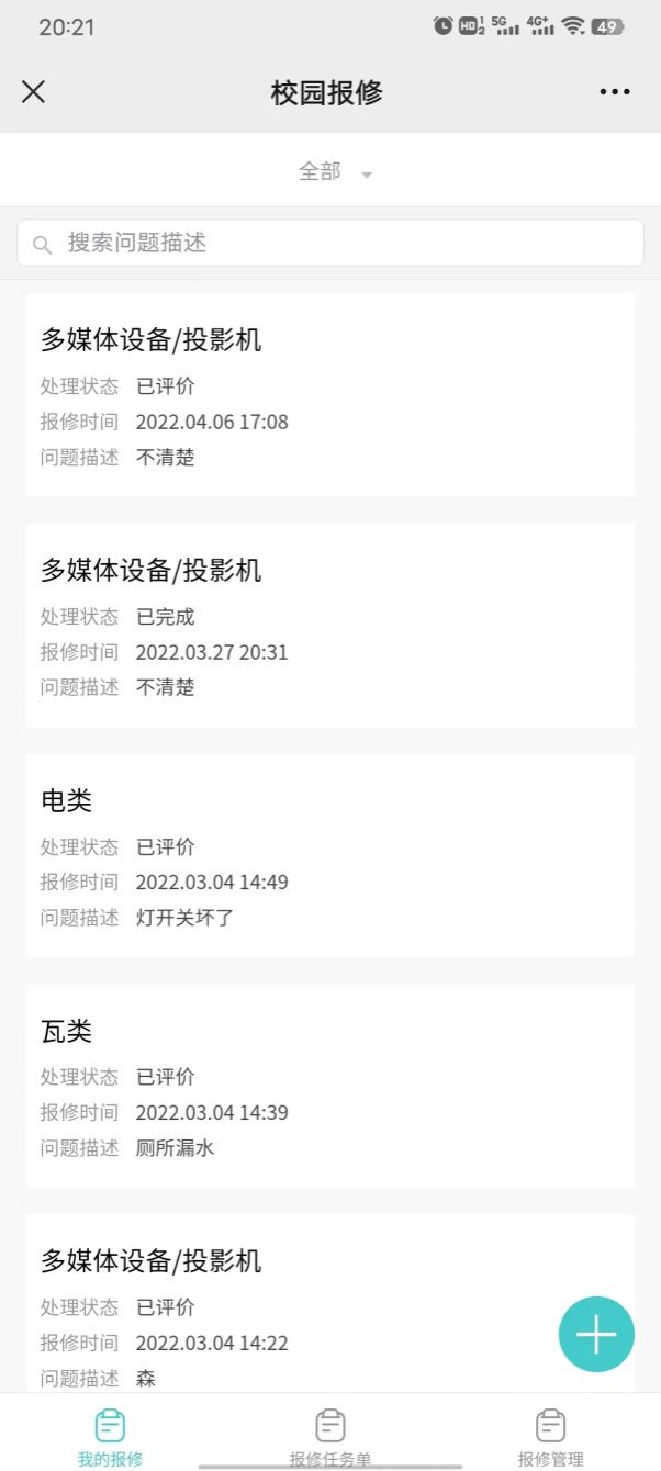 5、 在“我的报修”选项里点击出现如下界面: