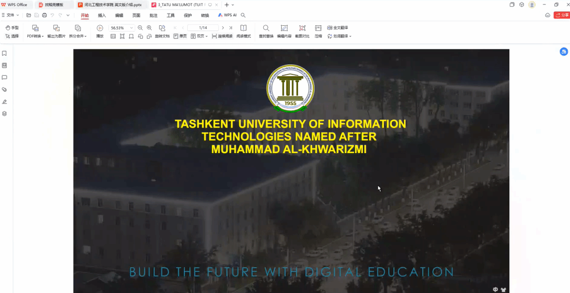 塔什干信息科技大学校方代表Ibrohimbek Yusupov也对该校的基本概况和国际交流合作项目的开展情况进行了详细介绍。