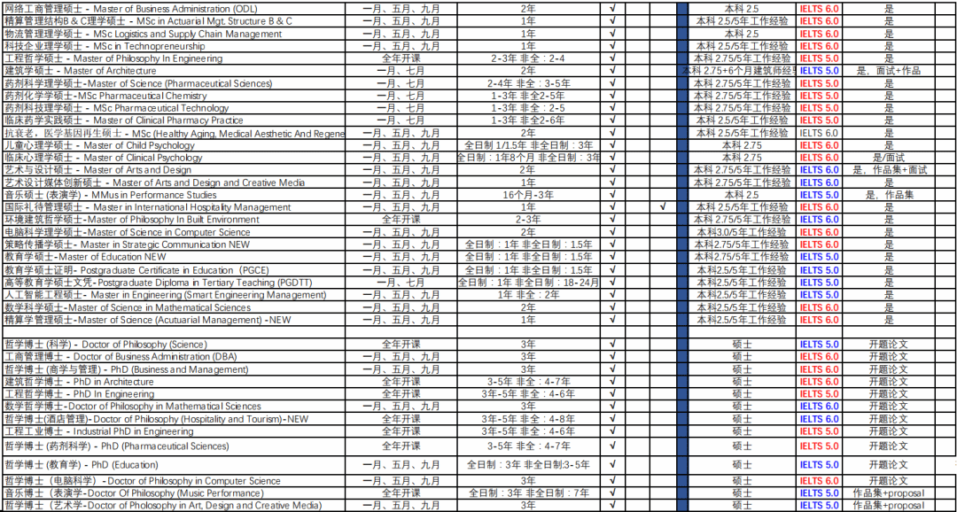 英语要求:雅思5.0-6.5或同等成绩,无语言成绩可申请条件录取。