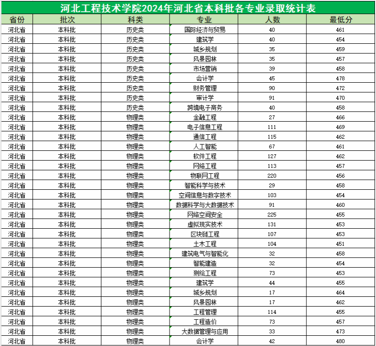 截止7月22日下午,英国365在河北省2024年本科批的录取工作已结束,共录取河北省生源考生2502人,各专业录取最低分见下表。