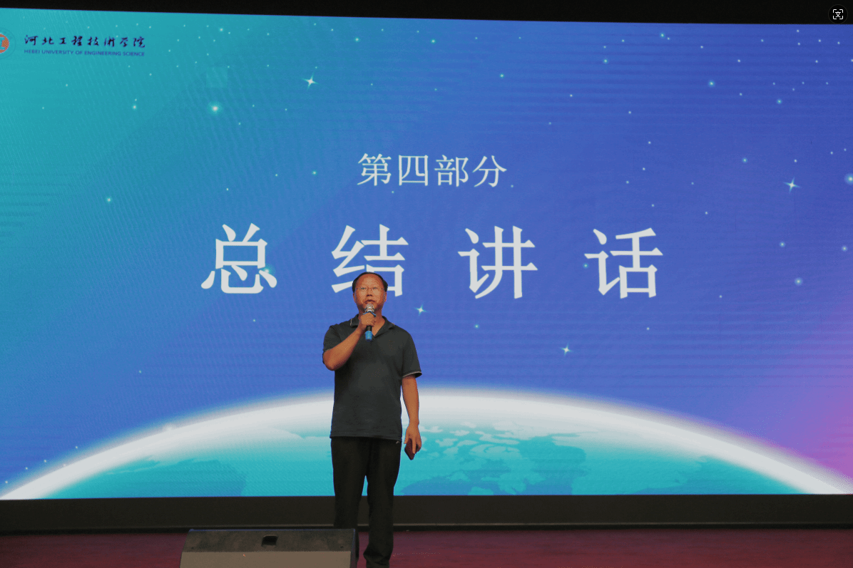 数智产业学院党总支书记杨文飞代表带队领导团队作发言,他对新教师们加入河工表示热烈欢迎,并对校领导及人事处对于本次培训的精心组织和安排表示衷心感谢;杨书记表示在本次活动中收获良多,既促进了新教师们教学能力进步和团队意识培养,也使其心理精神状态进一步提升,并鼓励新教师们注重个人成长,不断提升综合素质及敢打硬仗的毅力和勇气。