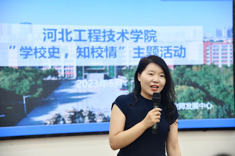 活动伊始,党政办公室主任郭静从学校的办学历史、校区组成、占地面积、办学定位、组织机构、专业结构等方面对学校情况进行了细致全面的讲解,并播放了学校宣传片,帮助教师深入了解学校艰苦办学路、辉煌发展史、奋进未来路,增强爱校荣校兴校意识。