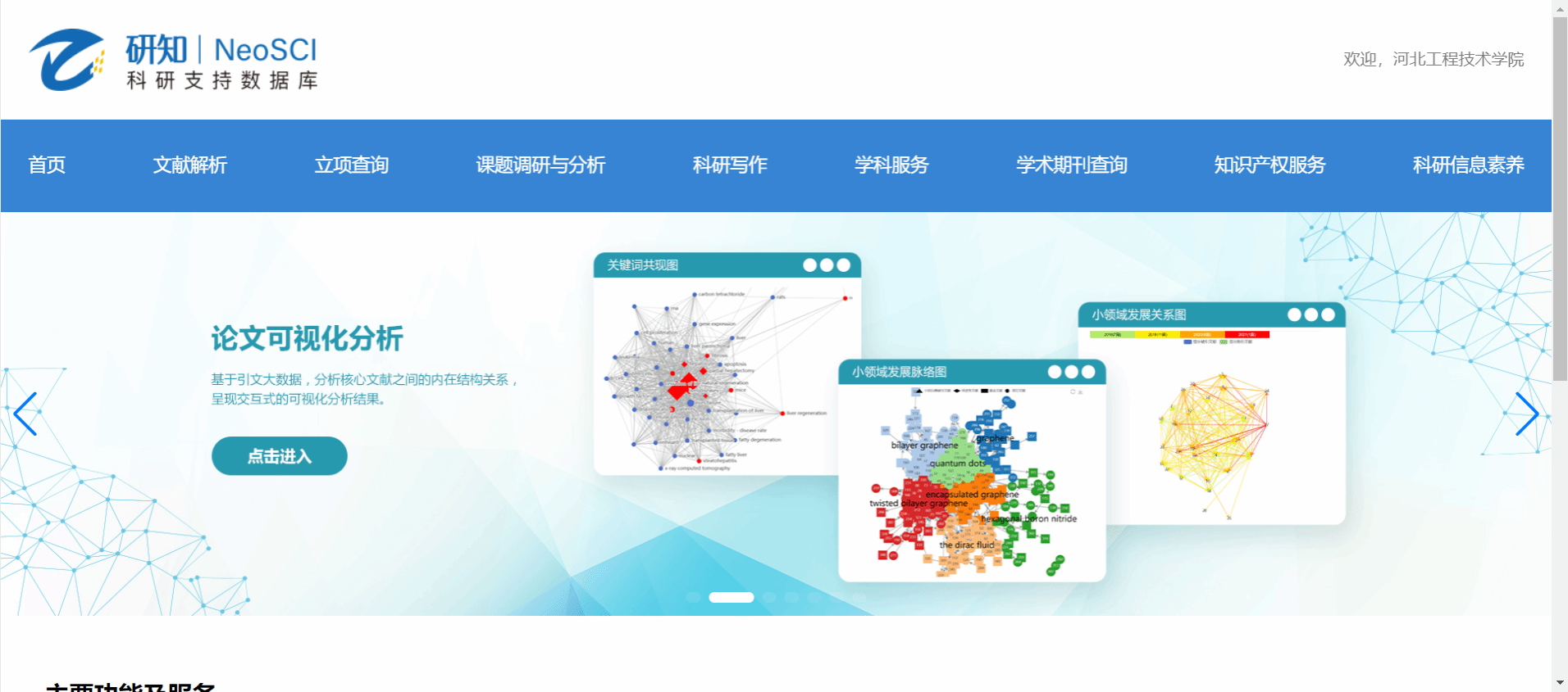 为满足全校师生及科研团队在学习及教学科研等方面的信息资源需要,图书馆开通了《汀兰文化艺术库》 、《学术期刊投稿分析系统》、《研知科研支持数据库》、《圣才数字图...